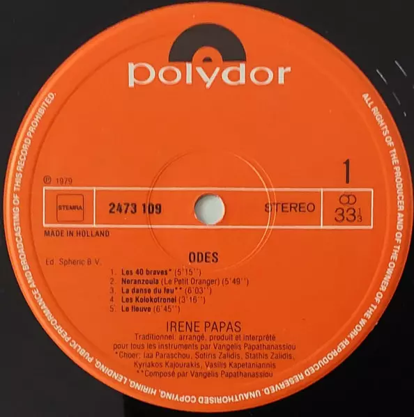 | Artiste | Evangelos Papathanassiou | Irene Papas |