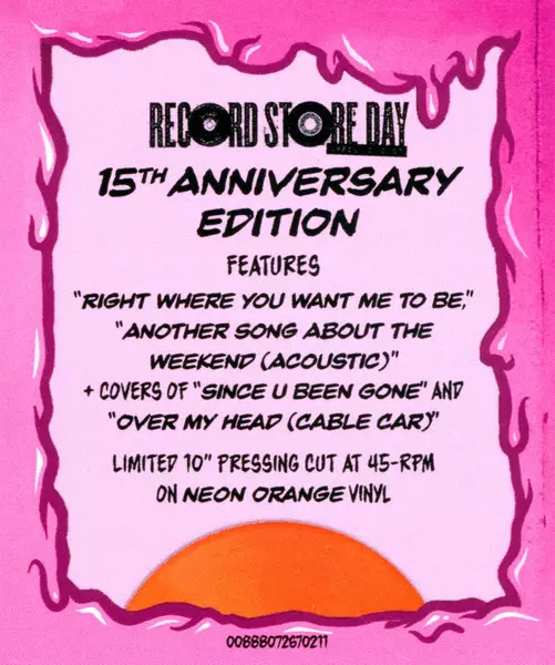 | Plus d'informations sur les disques vinyles | 15th Anniversary Neon Orange Vinyl — Limited 45RPM |