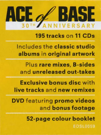 Ace Of Base: All That She Wants: The Classic Collection DLX La version sur 11CD/DVD/Coffret en deluxe édition. Cette édition particulière a été publiée en L'Europe dans la maison d'édition Edsel Records Le 10 juillet 2020. Album peut être classé dans un genre Pop.