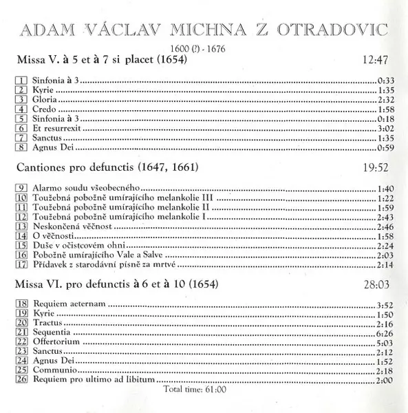 | Artiste | Adam Václav Michna Z Otradovic |