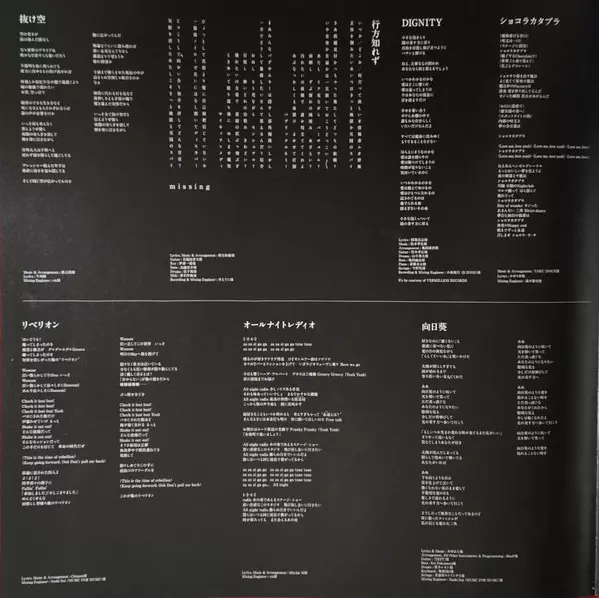 Bass Keisuke Torigoe | Drums Atsushi Matsushita | Guitar Yukio Nagoshi | Keyboards Ichiyo Izawa | MIDI Controller Karada Sagashi | Music By, Arranged By Shiina Ringo | Recorded By, Mixed By Uni Inoue