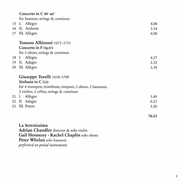 | Concerto In F, Op. 9/3, For 2 Oboes, Strings & Continuo | 11:07 min | |