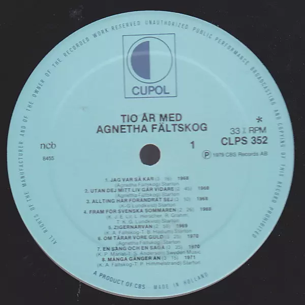 | Titre | Tio År Med Agnetha |