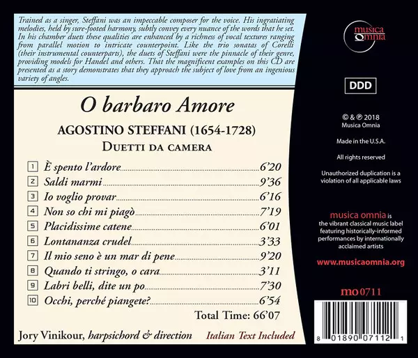 | Artiste | Jory Vinikour | Agostino Steffani |