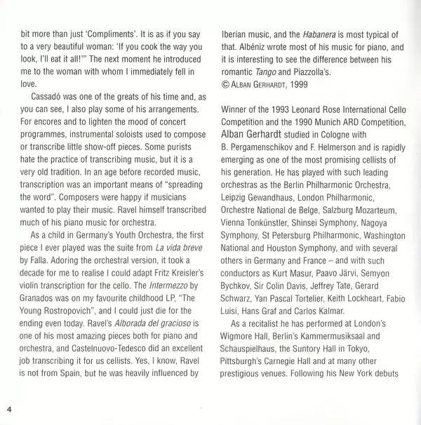 Artiste | Maurice Ravel | Astor Piazzolla | Manuel de Falla | Isaac Albéniz | Gaspar Cassadó | Enrique Granados | Alban Gerhardt | Rina Dokshinsky |