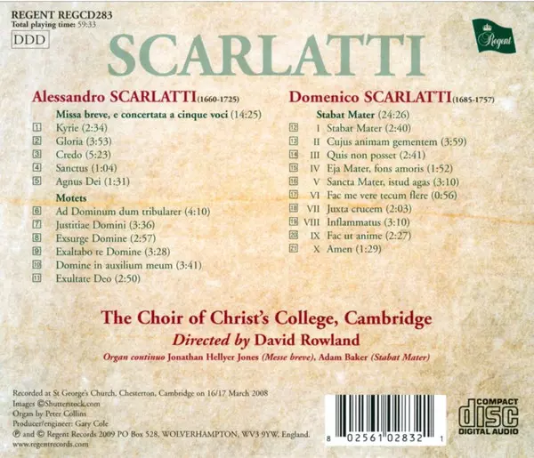 | Artiste | Alessandro Scarlatti | Domenico Scarlatti | The Choir Of Christ's College, Cambridge | David Rowland |