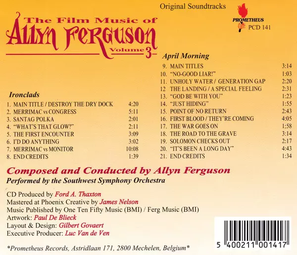 | Titre | The Film Music Of Allyn Ferguson Volume 3 (Ironclads & April Morning) |