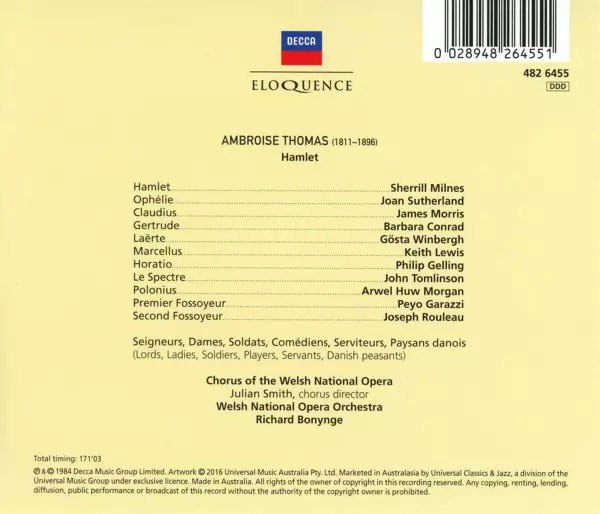 | Artiste | Joan Sutherland | Sherrill Milnes | Richard Bonynge | Welsh National Opera Chorus | The Welsh National Opera Orchestra | Ambroise Thomas |