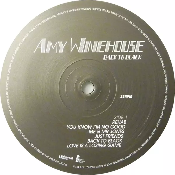Amy Winehouse: Back To Black DLX La version sur Le vinyle 2LP en deluxe Remasterisé édition. Cette édition particulière a été publiée en L'Europe dans la maison d'édition Island Records Group En collaboration avec Universal Records Le 13 septembre 2018.