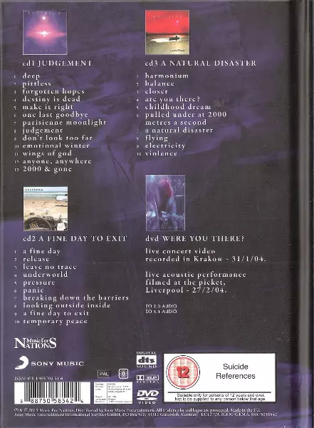 Anathema: Fine Days: 1999 - 2004 La version sur 3CD/DVD en Remasterisé édition. Cette édition particulière a été publiée en L'Europe dans la maison d'édition Music For Nations Le 16 décembre 2020. Album couvre tous les genres Rock, Progressive rock et Doom-Metal. Region 0.