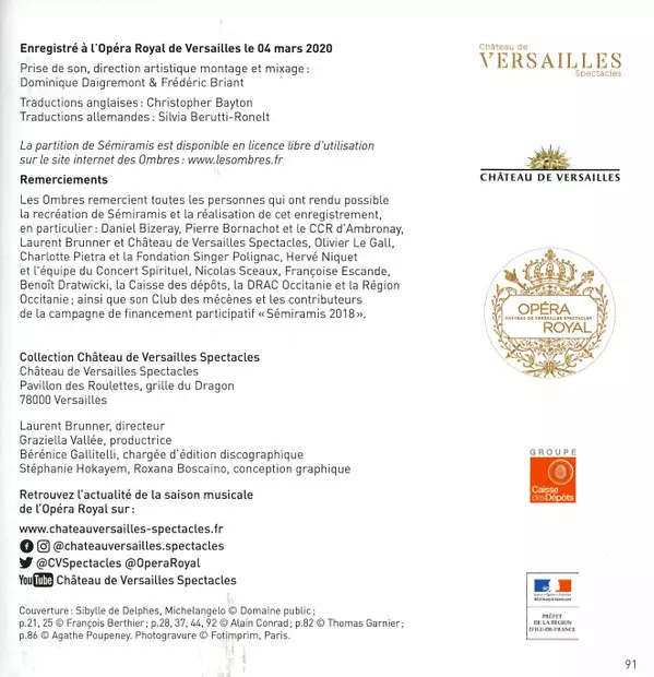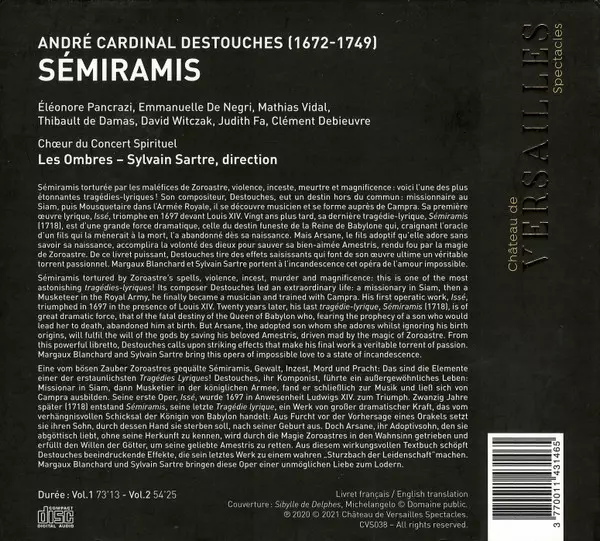 André-Cardinal Destouches: Sémiramis La version sur 2CD en Norme édition. Cette édition particulière a été publiée en L'Europe dans la maison d'édition Château de Versailles Spectacles Le 14 juillet 2021. Album couvre tous les genres Musique classique, Musique baroque et Opéra.