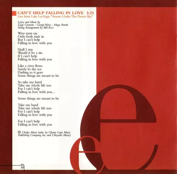 | 12 | Andrea Bocelli: Can't Help Falling In Love (Live From Lake Las Vegas "Amore Under The Desert Sky") | 3:26 min | |