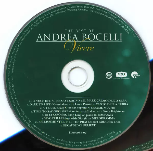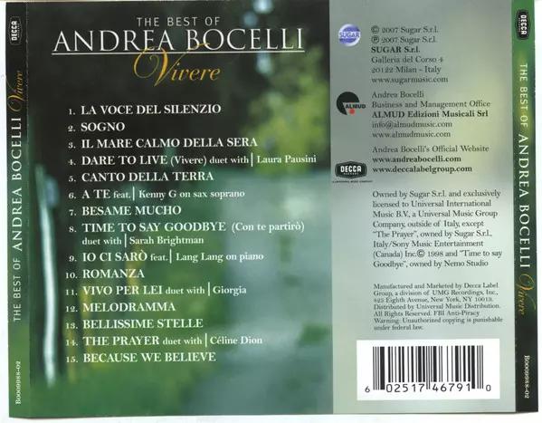 | Titre | The Best Of Andrea Bocelli: Vivere |
