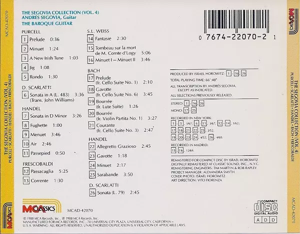 | Titre | The Segovia Collection, Vol. 4: The Baroque Guitar |