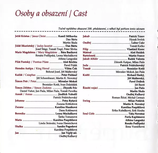 | Titre | Jesus Christ Superstar - Complete Live Recording 200. Představení |