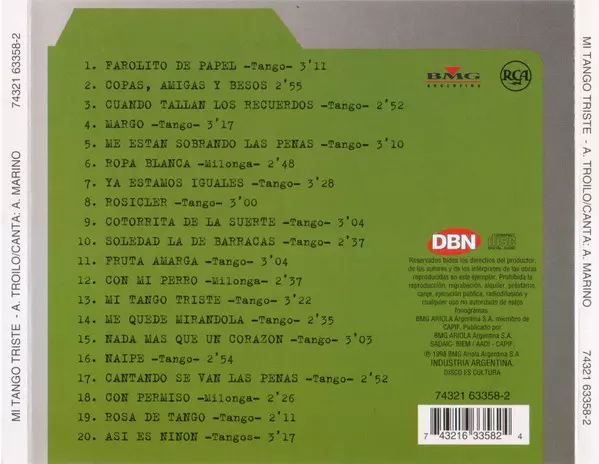 Aníbal Troilo Y Su Orquesta Típica: Mi Tango Triste La version sur CD en Norme édition. Cette édition particulière a été publiée en Argentine dans la maison d'édition BMG Argentina En collaboration avec RCA Le 26 juin 2018. Album couvre tous les genres Musique latine et Tango.
