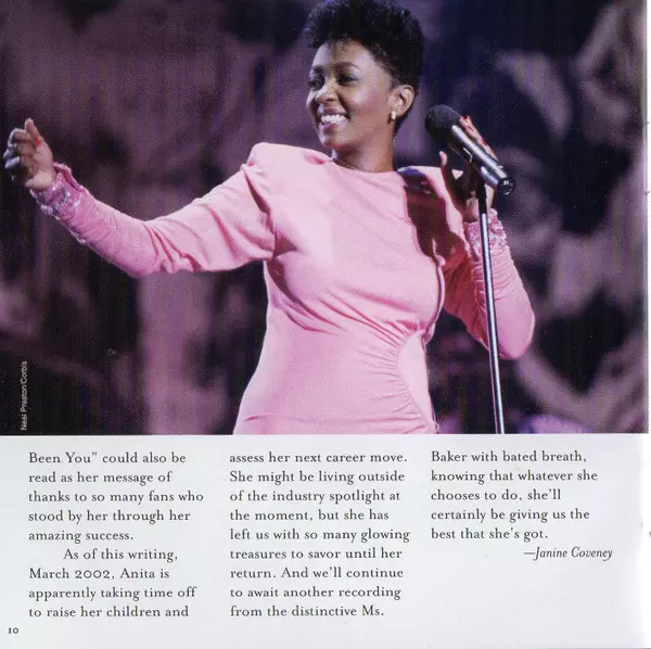 Anita Baker: The Best Of Anita Baker La version sur CD en Norme édition. Cette édition particulière a été publiée en ÉTATS-UNIS dans la maison d'édition Atlantic En collaboration avec Rhino Records (2) Le 18 juin 2002. Album couvre tous les genres Pop, Funk / Soul, Ballade, Downtempo, Soul et Contemporary R&B.