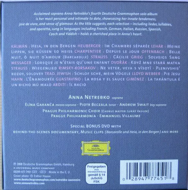 Anna Netrebko: Souvenirs La version sur CD/DVD/Coffret en Limité édition. Cette édition particulière a été publiée en L'Europe dans la maison d'édition Deutsche Grammophon Le 11 novembre 2008. Album peut être classé dans un genre Musique classique.