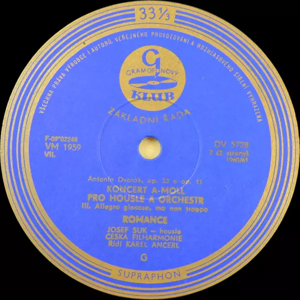 | Plus d'informations sur les disques vinyles | 1960 Original Mono Club Edition (Supraphon Gramofonový Klub) |