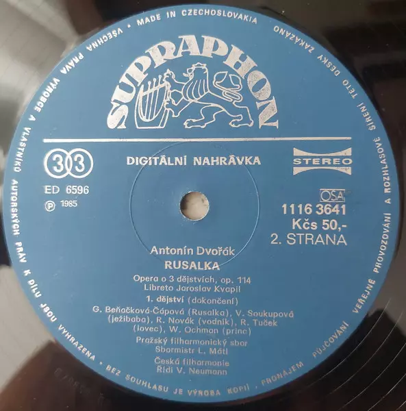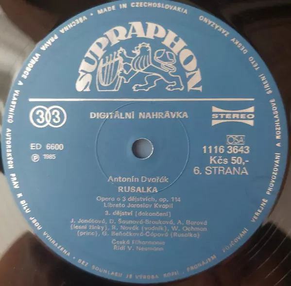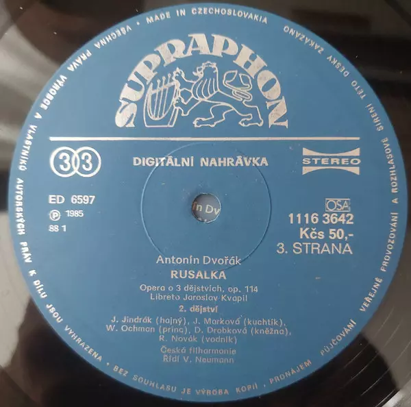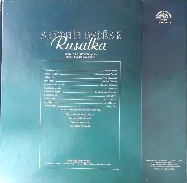 Antonín Dvořák: Rusalka La version sur Le vinyle 3LP/Coffret en Norme édition. Cette édition particulière a été publiée en Tchécoslovaquie dans la maison d'édition Supraphon année 1988.