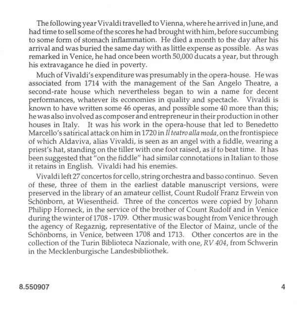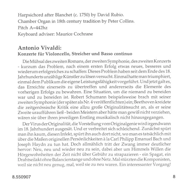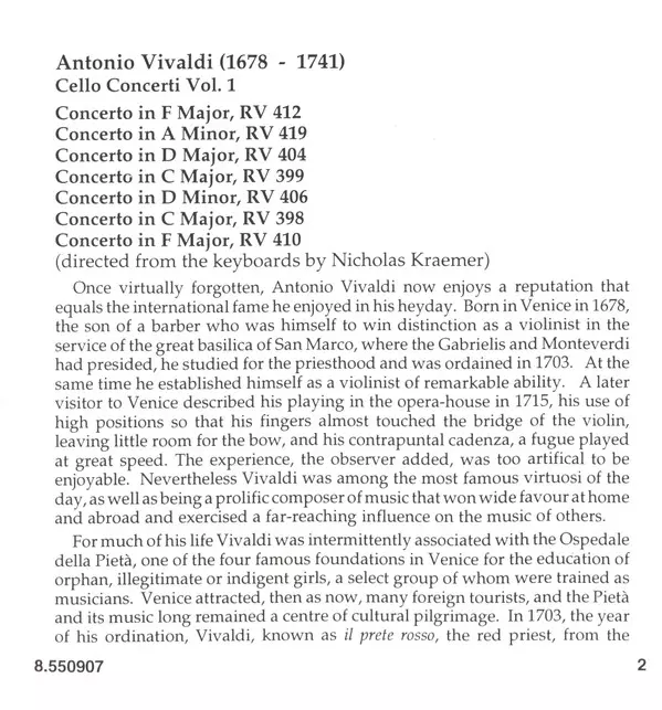 Artiste | Antonio Vivaldi | City Of London Sinfonia | Nicholas Kraemer | Raphael Wallfisch |