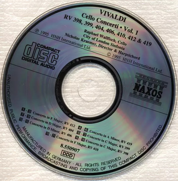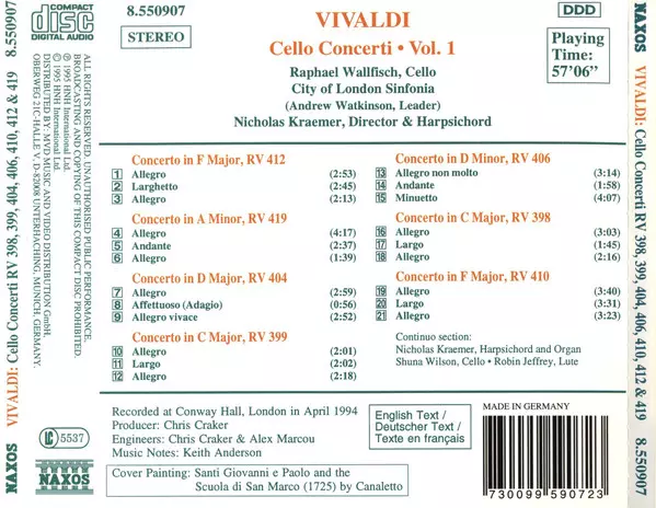 Titre | Cello Concerti Vol. 1 - RV 398, 399, 404, 406, 410, 412 & 419 |