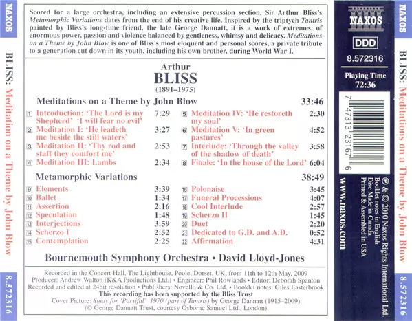 Meditations on a Theme of John Blow; Metamorphic Variations - CD