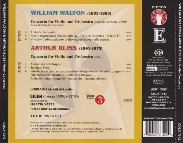 | Artiste | Sir William Walton | Arthur Bliss | Lorraine McAslan | BBC Concert Orchestra | Martin Yates |