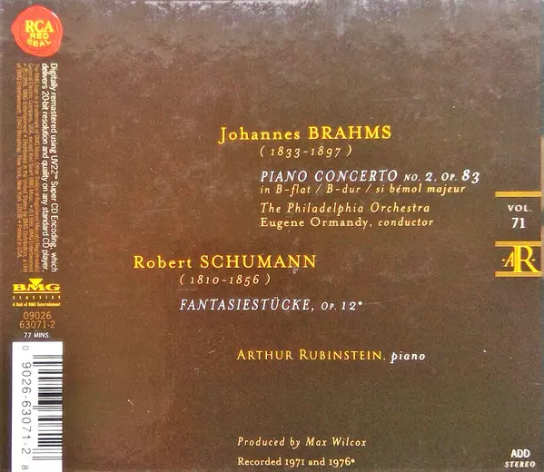 | Artiste | Johannes Brahms | Robert Schumann | Arthur Rubinstein |