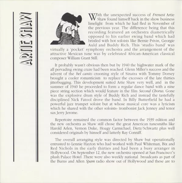 Artie Shaw: Evensong La version sur CD en Remasterisé édition. Cette édition particulière a été publiée en ROYAUME-UNI dans la maison d'édition Hep Records (3) Le 5 décembre 2000. Album couvre tous les genres Jazz, Big Band et Swing.