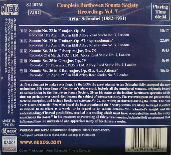 | Artiste | Ludwig van Beethoven | Artur Schnabel |