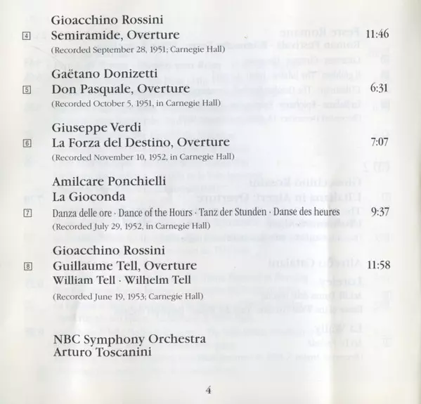 | Artiste | Arturo Toscanini | NBC Symphony Orchestra |