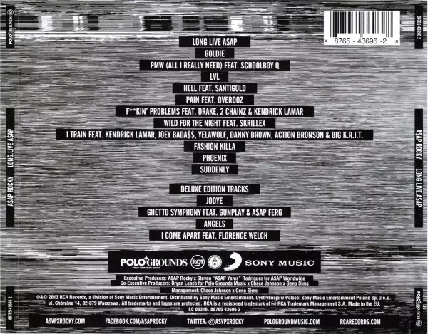 ASAP Rocky: Long.Live.A$AP DLX La version sur CD en deluxe édition. Cette édition particulière a été publiée en L'Europe dans la maison d'édition Polo Grounds Music En collaboration avec RCA et Sony Music Le 15 janvier 2013.