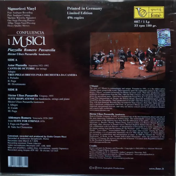 | Artiste | I Musici | Astor Piazzolla | Aldemaro Romero | Héctor Ulises Passarella |