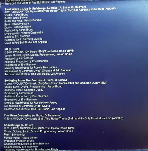 Bass Billy Mohler | Guitar Jimmy Messer | Keyboards, Drums, Synthesizer [Bass], Producer Aaron Bruno | Mixed By Neal Pogue | Mixed By [Assistant] Jeremiah Olvera | Producer [Additional], Engineer Eric Stenman | Written-By Aaron Bruno