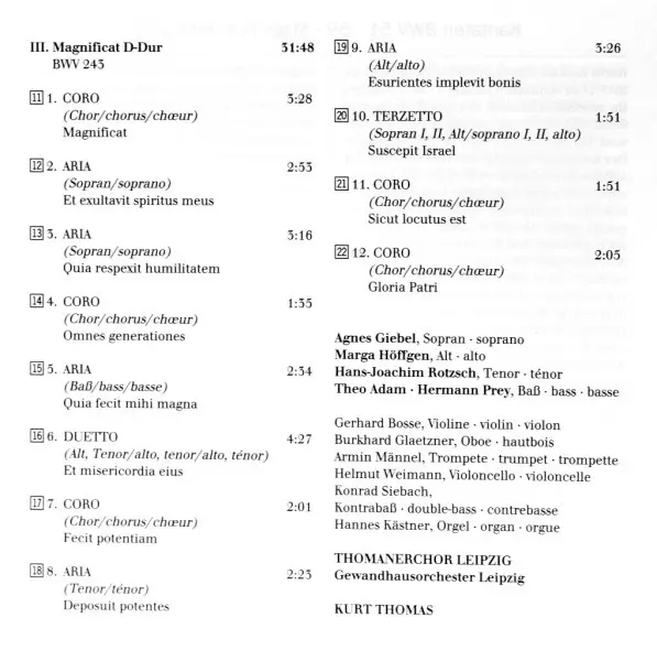 | III. Magnificat In D Major BWV 243 | 31:48 min |