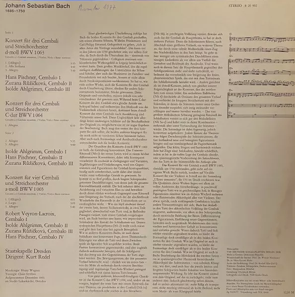 | Harpsichord [Cembalo III] Zuzana Růžičková | Harpsichord [Cembalo II] Hans Pischner | Harpsichord [Cembalo I] Isolde Ahlgrimm | ||