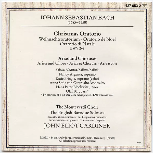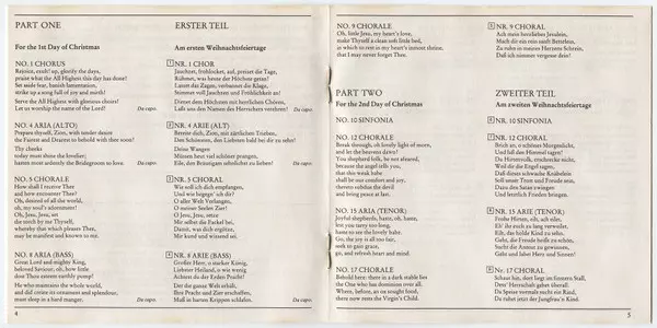 | Titre | Christmas Oratorio = Weihnachtsoratorium = Oratorio De Noël (Arias And Choruses = Arein Und Chöre = Arias Et Chœurs) |