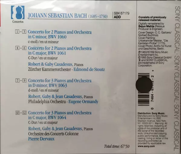 | Titre | Concertos For 2 Pianos, BWV 1060 & BWV 1061 / Concertos For 3 Pianos, BWV 1063 & BWV 1064 |