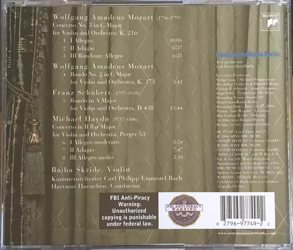 | Artiste | Wolfgang Amadeus Mozart | Michael Haydn | Baiba Skride |