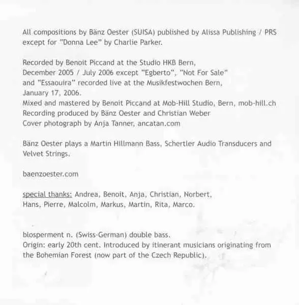 | Artiste | Bänz Oester |