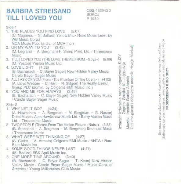 | Plus d'informations sur les disques vinyles | 1989 Yugoslavia Cassette |