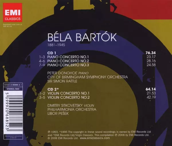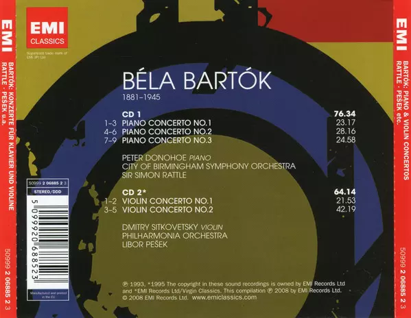| Artiste | Sir Simon Rattle | Philharmonia Orchestra | Libor Pešek | Béla Bartók | City Of Birmingham Symphony Orchestra | Peter Donohoe | Dmitry Sitkovetsky |