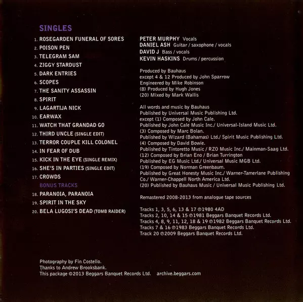 Jsou považováni za zakladatele gotického rocku a za jednu z kapel, která určovala styl 80. let: Bauhaus. Kapela pojmenovaná podle výmarské školy umění a designu, kterou v roce 1978 založili Peter Murphy, Daniel Ash, David a Kevin Haskinsovi, se proslavila o rok později singlem "Bela Lugosi's Dead" (najdete ho na albu "Singles") - skladba se udrž...