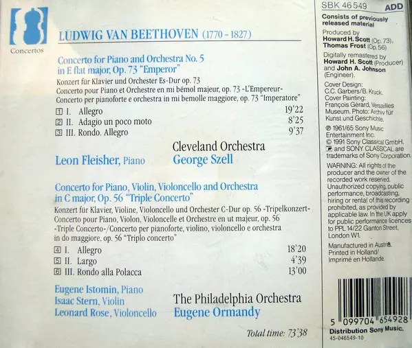 | Titre | Piano Concerto No. 5 "Emperor" • "Triple Concerto" |