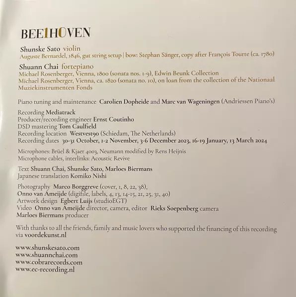 | Artiste | Ludwig van Beethoven | Shunske Sato | Shuann Chai |