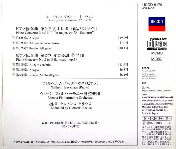 | Artiste | Ludwig van Beethoven | Wiener Philharmoniker | Wilhelm Backhaus | Clemens Krauss |