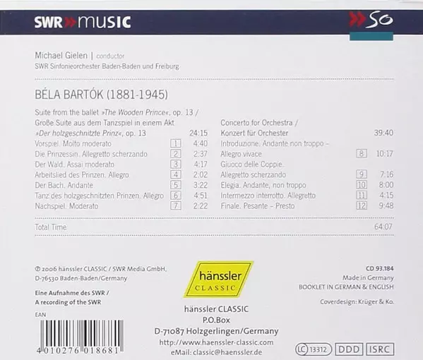 | Artiste | Béla Bartók | SWR Sinfonieorchester Baden-Baden Und Freiburg | Michael Gielen |