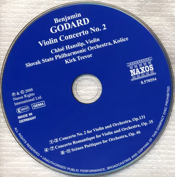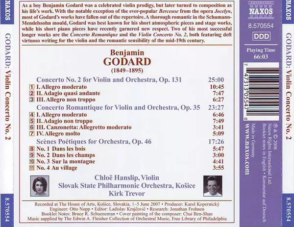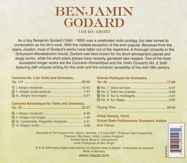 | Artiste | Slovak State Philharmonic Orchestra, Košice | Chloë Hanslip | Kirk Trevor | Benjamin Godard |