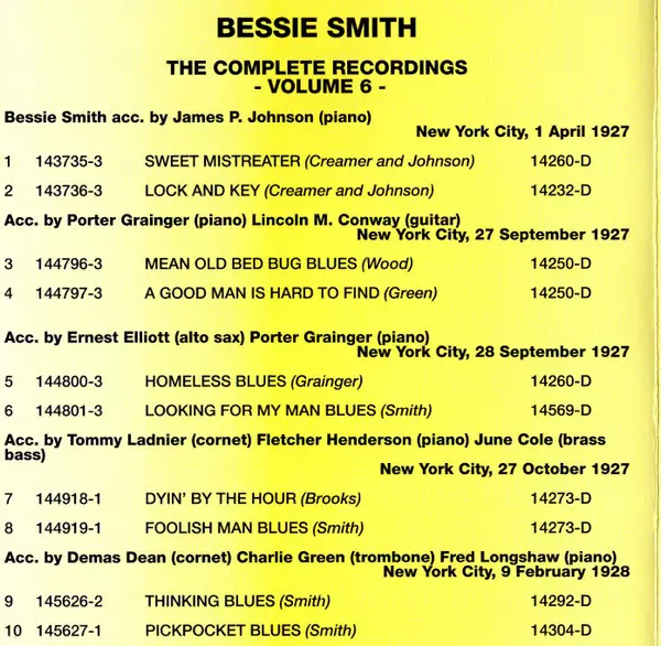 Alto Saxophone Ernest Elliott | Composed By, Vocals Bessie Smith | Piano Porter Grainger